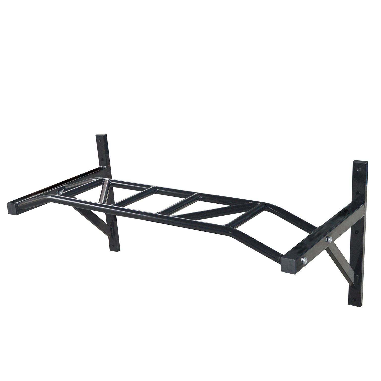 Barra per trazioni con fissaggio a muro professionale. La disposizione delle aste a doppio manico offre diverse possibilità di impugnatura: parallela – dritta – obliqua – simmetrica e asimmetrica. Ideale per allenamenti funzionali a corpo libero, esercizi calistenici e per crosstraining class.