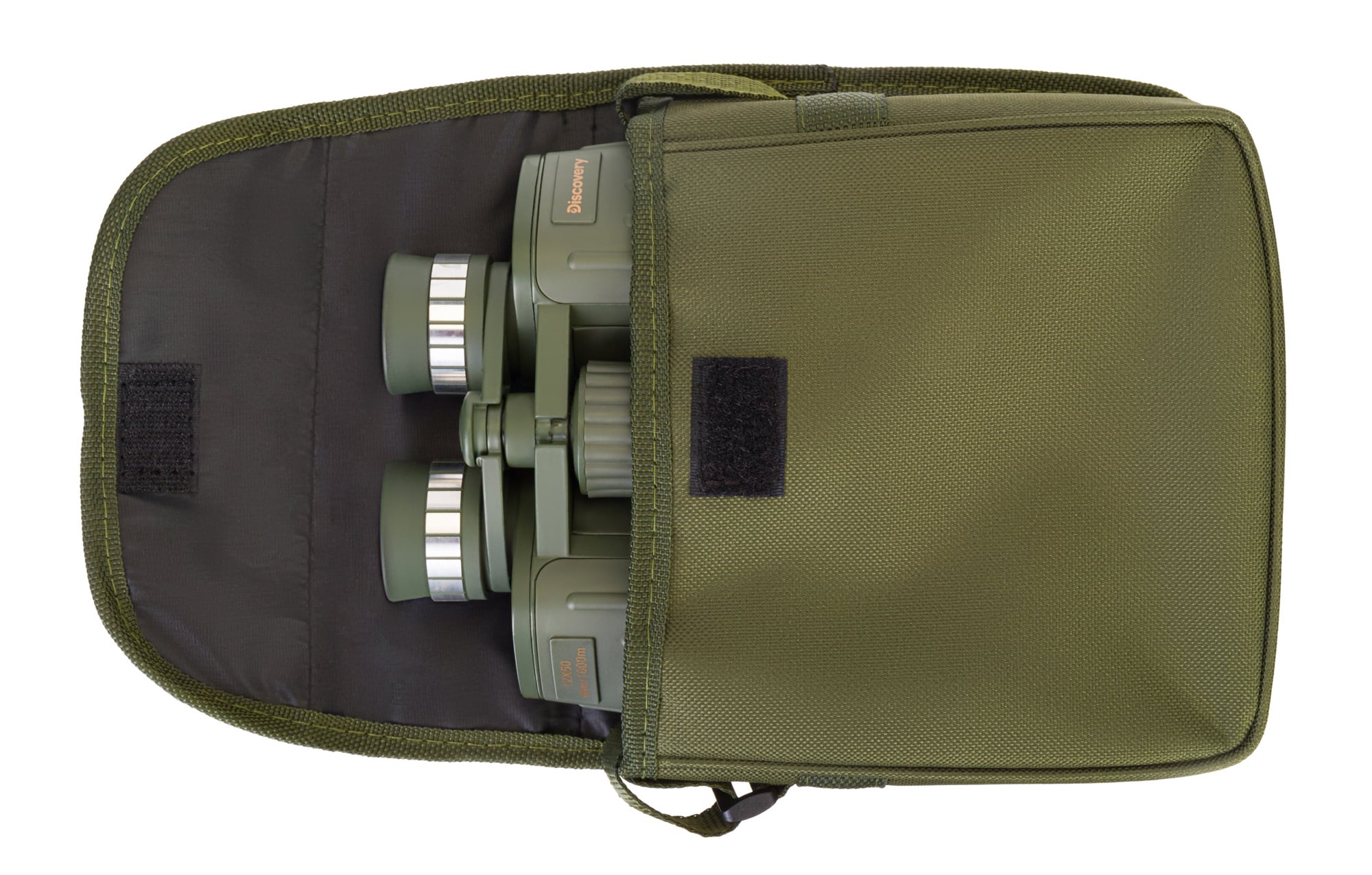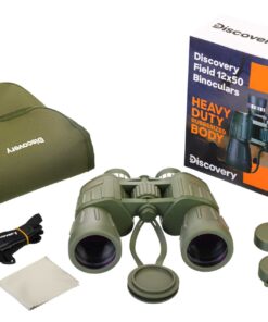 Gli elementi ottici del binocolo Discovery Field 12×50 sono realizzati in vetro BK-7, mentre il suo corpo è in plastica leggera ma robusta. Il rivestimento in gomma del corpo assicura protezione contro qualsiasi danno meccanico, contro le infiltrazioni d’umido e di polvere. Grazie ai rilievi sulla superficie esterna, lo strumento offre una presa comoda e non scivola dalle mani. Le lenti possono essere regolate con la comoda rotella centrale di messa a fuoco, anch’essa rivestita in gomma. Se necessario, è possibile regolare le diottrie per compensare un eventuale differenza di visione tra l’occhio destro e il sinistro.