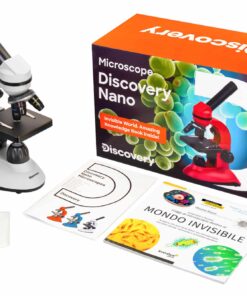 Inoltre, il microscopio viene venduto accompagnato dal libro educativo “Mondo invisibile”. Questo coloratissimo libro illustra tutte le complessità che si incontreranno nell’uso dello strumento, come, ad esempio, quali sono le parti da cui è composto il microscopio e le loro funzioni, che aspetto hanno batteri e protozoi, che cosa si può vedere in una goccia d’acqua e molto altro ancora, il tutto sempre con un linguaggio chiaro e semplice. Oltre agli aspetti teorici, il libro descrive inoltre degli interessanti esperimenti che è possibile condurre a casa, usando il microscopio Discovery Nano.