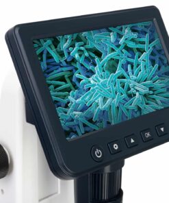 Le immagini riprodotte sono catturate da una fotocamera per microscopio da 5 MP. La luminosità dell’illuminazione a LED è regolabile, offrendo pertanto le migliori condizioni di lavoro. La fotocamera fornisce un ingrandimento da 10 a 300x e un ulteriore zoom digitale consente l’osservazione di oggetti fino a 1200x. L’immagine, vivida e dettagliata, è quindi trasmessa allo schermo LCD integrato da 5″. Lo schermo rende più facile lavorare a lungo con lo strumento, dato che osservare l’immagine sul display è molto più comodo che utilizzare l’oculare di un microscopio classico. Lo schermo a colori ha una buona risoluzione dell’immagine.
