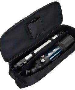 Il vantaggio di questo telescopio è il tubo ottico di dimensioni ridotte. In confronto alla maggior parte degli altri rifrattori, il suo tubo ottico è lungo la metà. In aggiunta, il telescopio è semplice e rapido da approntare. Ciò lo rende ideale per le gite su strada, i fine settimana in campagna e per i festival di astrofotografia fuori città. Questo strumento e i suoi accessori si possono riporre in una comoda borsa, per trasportarli in tutta sicurezza. Lo stabile treppiede ad altezza regolabile, fatto in alluminio ed equipaggiato con un vassoio porta accessori, si adatta facilmente all’altezza di ogni utente.
