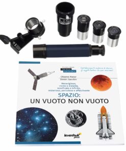 Il Discovery Spark 769 EQ è un riflettore newtoniano con specchio sferico perfetto per i principianti che desiderano esplorare gli oggetti del profondo cielo: nebulose, ammassi stellari e galassie lontane. Grazie a questo telescopio è possibile osservare molti degli oggetti elencati e altri ancora, tra quelli del catalogo Messier. Anche lo spazio interplanetario, cioè la Luna e i pianeti del Sistema solare, rimane accessibile alle osservazioni. Il colorato libro educativo “Spazio. Vuoto non-vuoto” sarà d’aiuto per ripassare le proprie conoscenze di astronomia ed esplorare il cielo stellato.