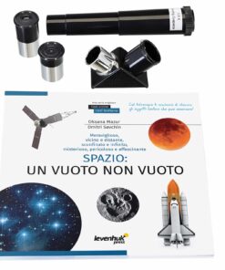Il telescopio Discovery Spark Travel 50 con libro educativo è tutto quello che un astronomo in erba possa desiderare. Uno strumento leggero e compatto, accompagnato da una pratica custodia per il trasporto, un treppiede da tavolo e altri accessori fondamentali, compreso il libro educativo “Spazio. Vuoto non-vuoto”. Grazie a questa colorata e divertente guida enciclopedica, si potranno scoprire informazioni utili sugli oggetti spaziali visibili attraverso il telescopio. Il libro ha la copertina flessibile ed è quindi facile da portare con sé ai festival di astronomia o durante le gite fuori porta, insieme al telescopio e ai suoi accessori.