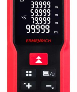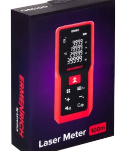 L’Ermenrich Reel GM100 è un misuratore laser progettato per effettuare misure nei cantieri edilizi e durante i lavori di ristrutturazione. Può essere usato anche per le misure dei confini catastali e per le misure dei terreni, nonché per qualsiasi altra applicazione che necessiti di misure precise delle dimensioni lineari di un oggetto, della sua area o del suo volume. La massima distanza misurabile è pari a 100 metri. Il misuratore laser può effettuare anche misurazioni angolari. Grazie alla funzione teorema di Pitagora, lo strumento calcola automaticamente le distanze basandosi su delle misure intermedie. Questa funzione è particolarmente utile quando non è possibile posizionare il laser in modo da puntare il raggio laser lungo la direzione che si desidera misurare.