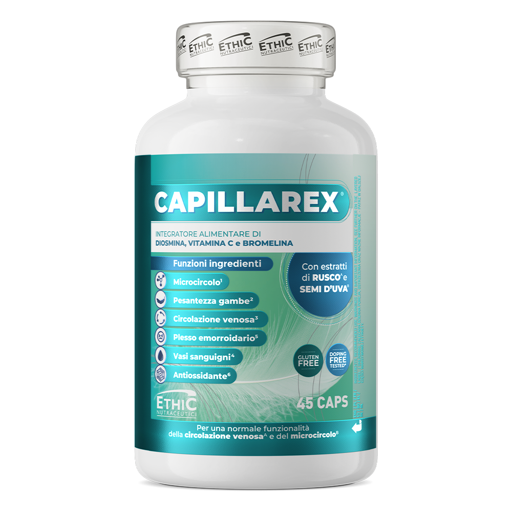 Integratore alimentare di Diosmina, Vitamina C, Bromelina, con estratto di rusco3 e di semi d’uva1. Per una normale funzionalità della circolazione venosa3 e del microcircolo1