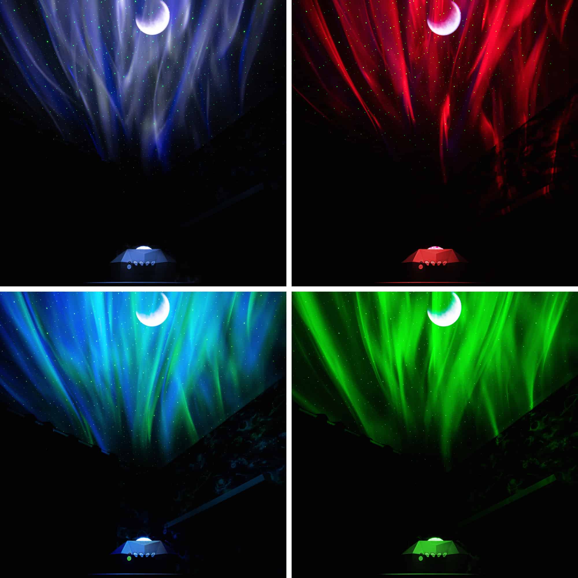 - Proiezioni colorate dello spazio e dell’aurora boreale al ritmo della propria musica preferita