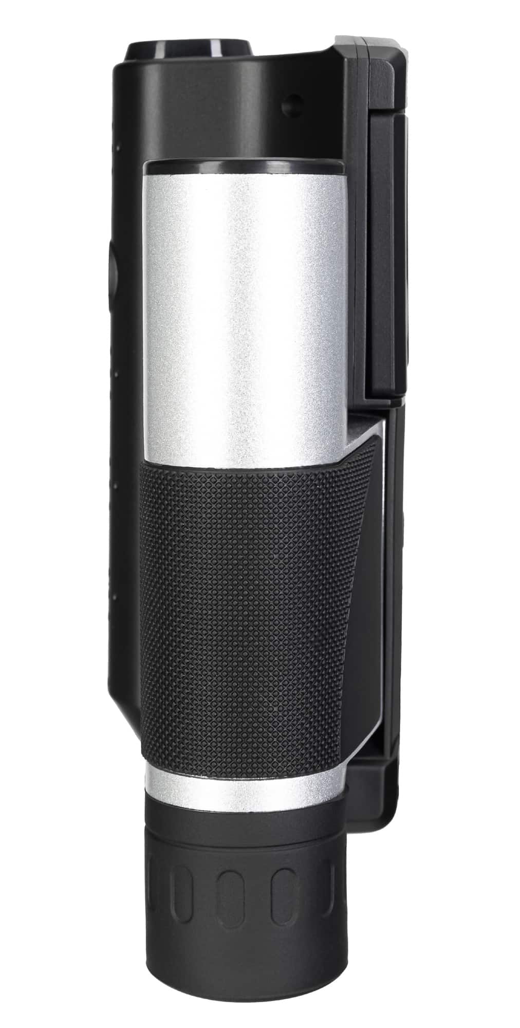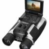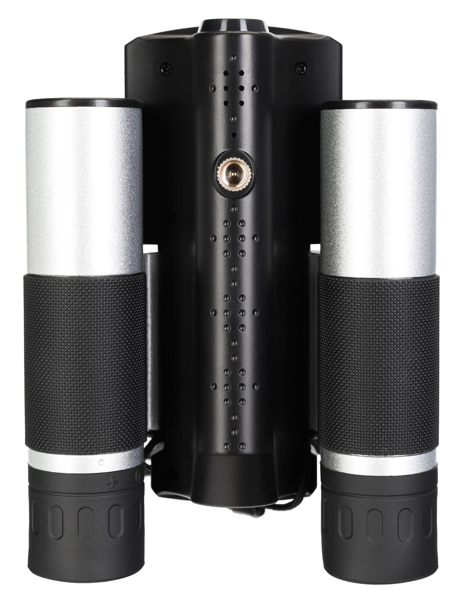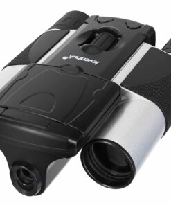 Le lenti del binocolo consentono di visualizzare gli oggetti distanti con un ingrandimento di 10x. Il dispositivo presenta inoltre uno zoom digitale 8x. L’intelligente design a ponte chiuso ospita uno schermo LCD da 2 pollici ribaltabile che produce un’immagine ad alta qualità grazie a un sensore CMOS. La rotella di messa a fuoco integrata nel corpo accanto alle lenti obiettivo permette di mettere a fuoco entrambe le lenti in modo facile e veloce. È possibile mettere a fuoco gli oggetti osservati distanti tra 10 e 1000 m.