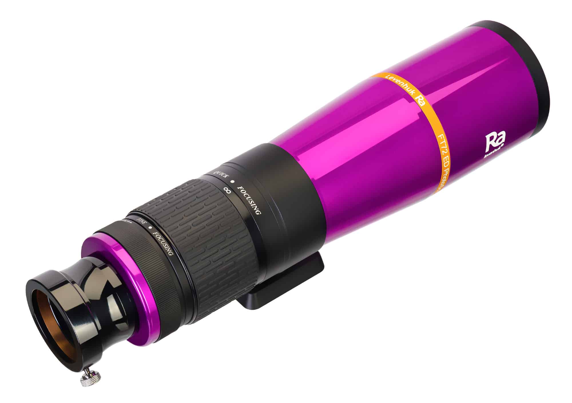 La principale caratteristiche del Levenhuk Ra FT72 ED è il focheggiatore elicoidale da 2″. È robusto è consente una messa a fuoco molto accurata e con movimento fluido senza effetto backlash. Ciò garantisce immagini più cristalline e nitide di quelle ottenibili con un focheggiatore a pignone e cremagliera o persino con un più avanzato focheggiatore Crayford. Inoltre, è compatibile con accessori pesanti.