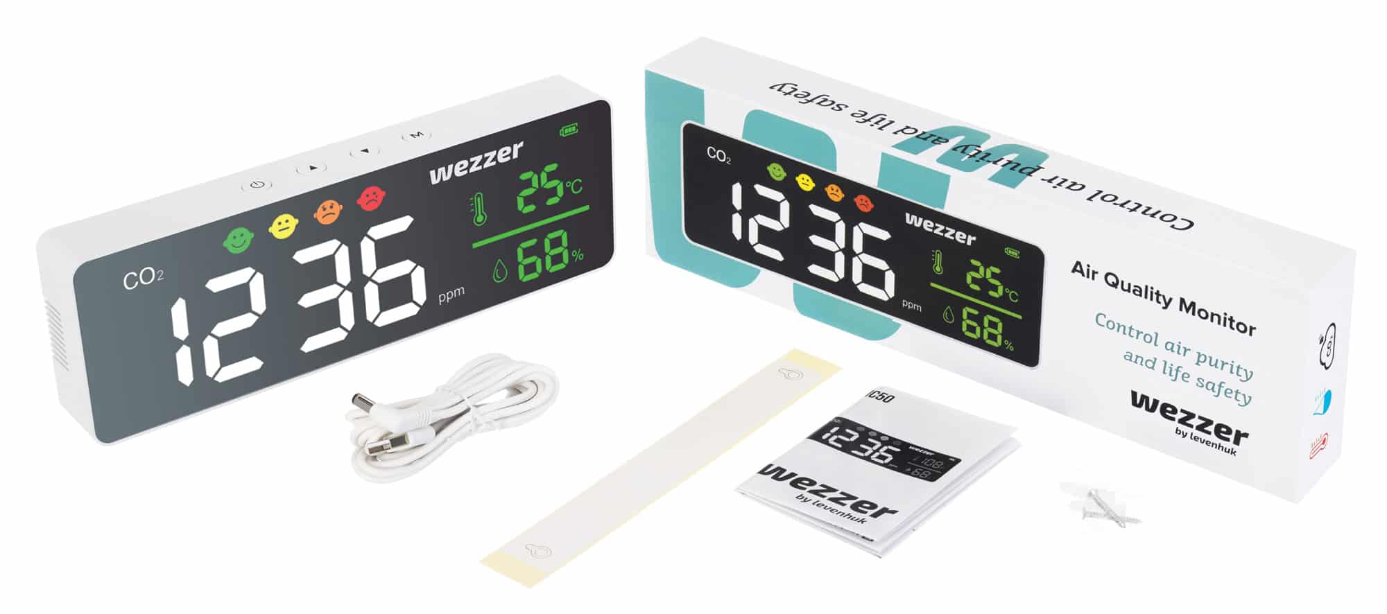 Il misuratore della qualità dell’aria Levenhuk Wezzer Air MC50 monitora il livello di anidride carbonica e ne mostra il valore sul proprio schermo LCD. Il livello di CO₂ è un parametro fondamentale per determinare la qualità dell’aria negli ambienti chiusi e ha un impatto diretto sul comfort quotidiano di chi vive in tali ambienti. Un’alta concentrazione di anidride carbonica, invisibile ma potenzialmente pericolosa, causa stanchezza, mal di testa, riduzione della soglia di attenzione e altri sintomi spiacevoli. Migliora la qualità dell’aria grazie a Levenhuk Wezzer Air e migliorerai in modo rapido e semplice anche la tua qualità di vita!
