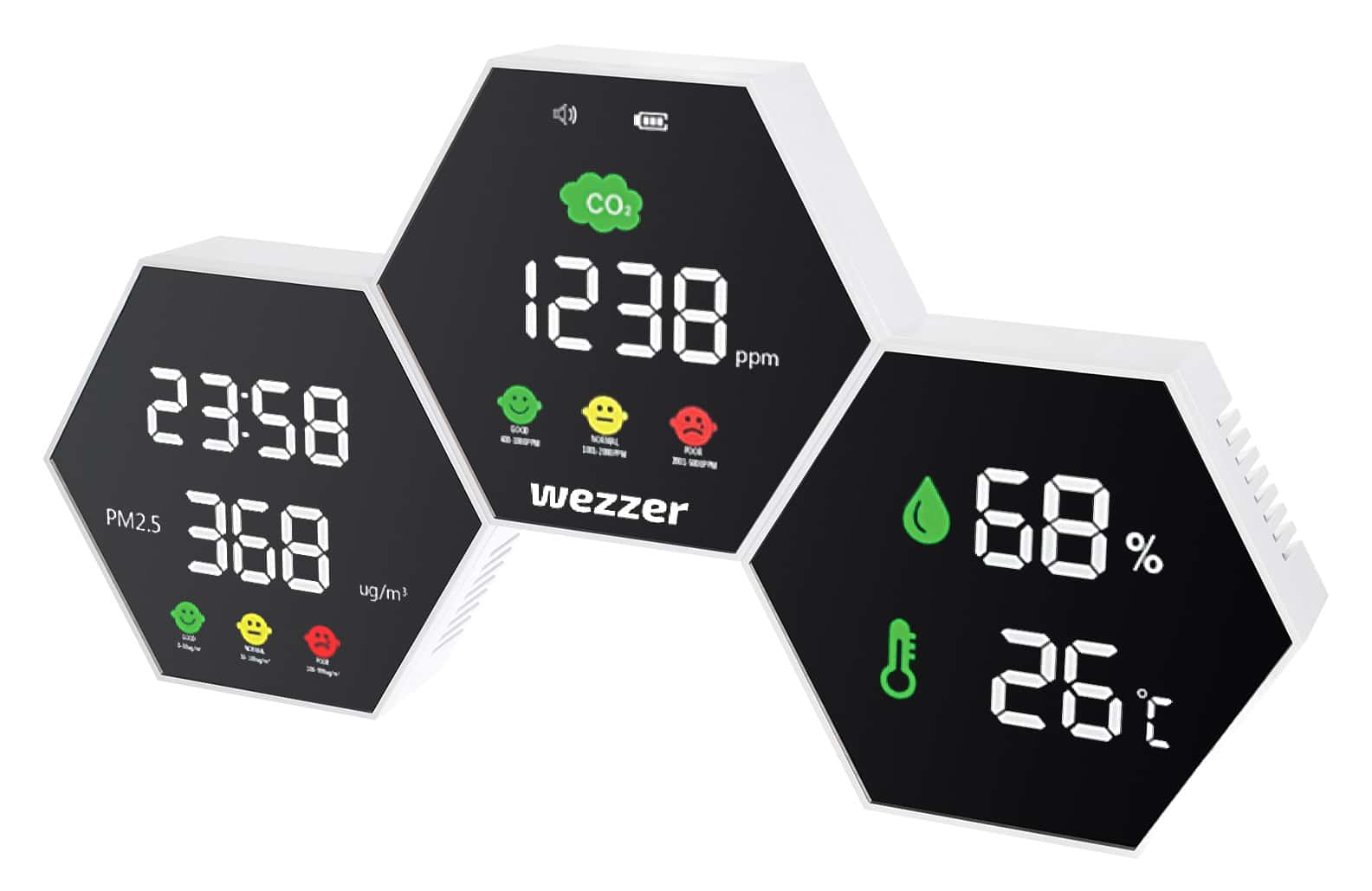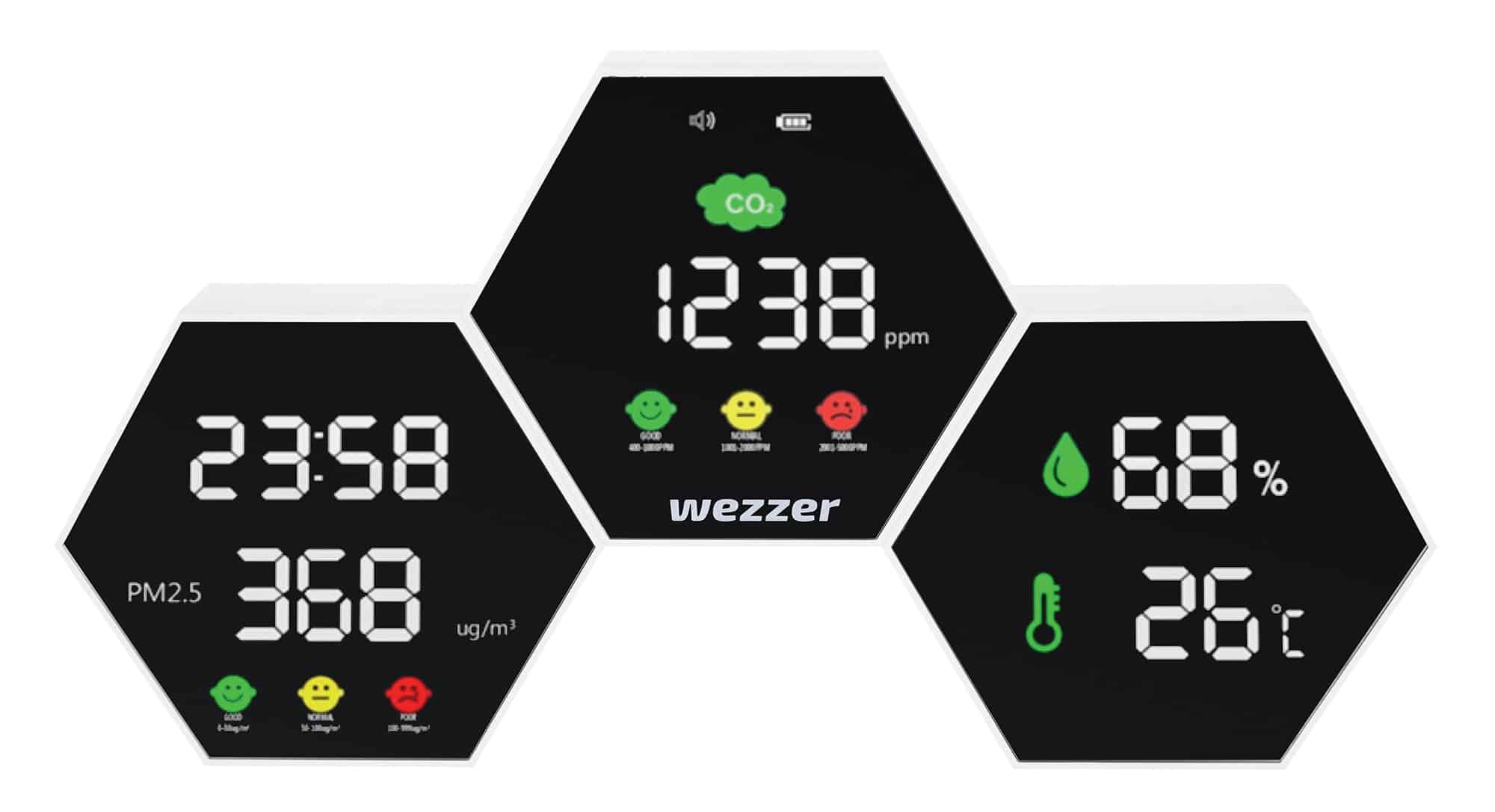 Garanzia a vita Funzioni: rilevatore di CO₂, analizzatore di particolato, termometro, igrometro, orologio
