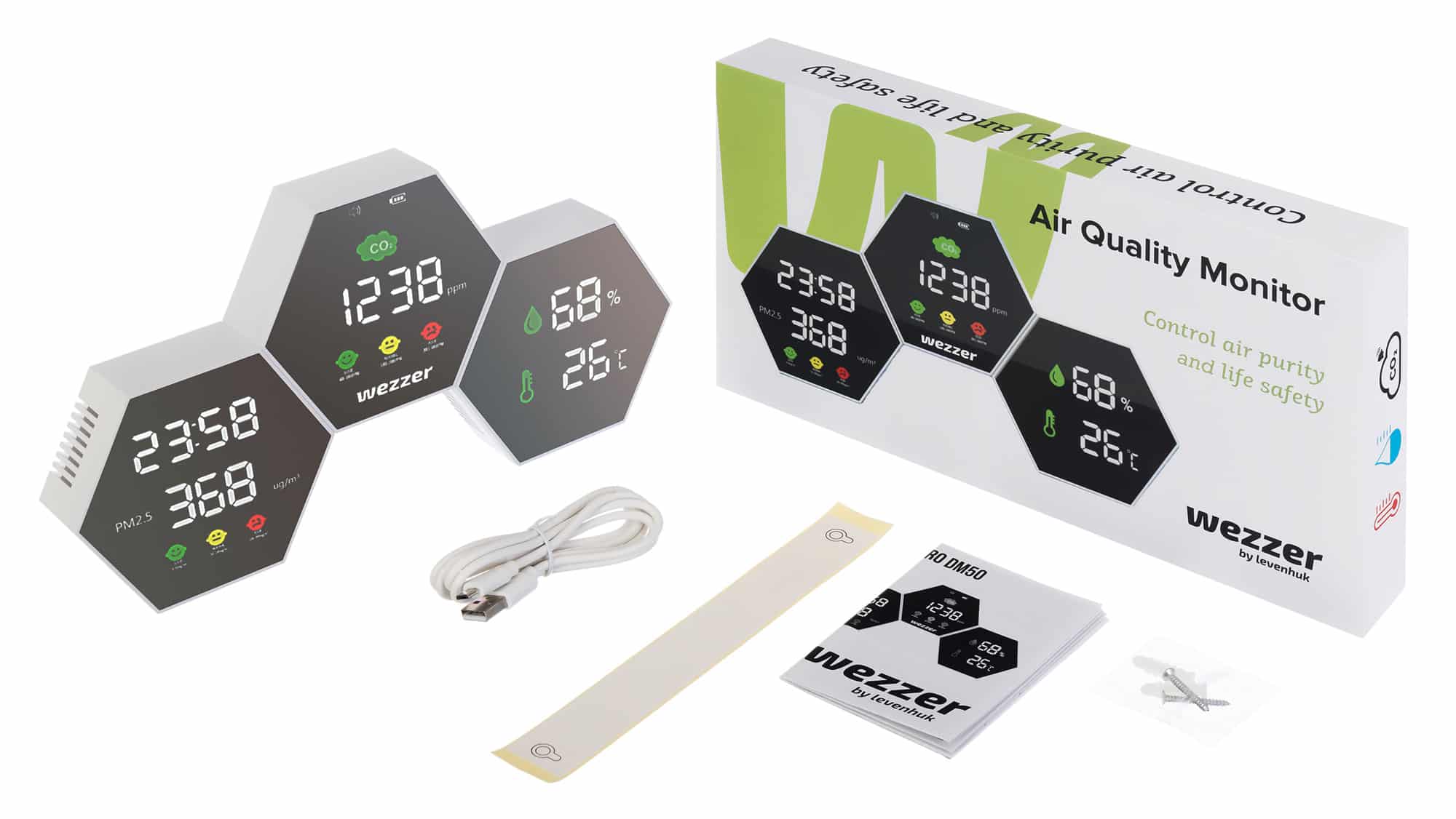 Il misuratore della qualità dell’aria Levenhuk Wezzer Air PRO DM50 rileva i parametri più importanti per la salute umana, come il livello di anidride carbonica e di particolato atmosferico. Si tratta di minacce invisibili che adulti e bambini devono affrontare ogni giorno, soprattutto nelle grandi città. Alte concentrazioni di CO₂ possono causare mal di testa e stanchezza cronica, mentre grandi quantità di particolato, composto da residui incombusti, solfati, nitrati e altri elementi dannosi, possono causare malattie respiratorie e cardiovascolari.