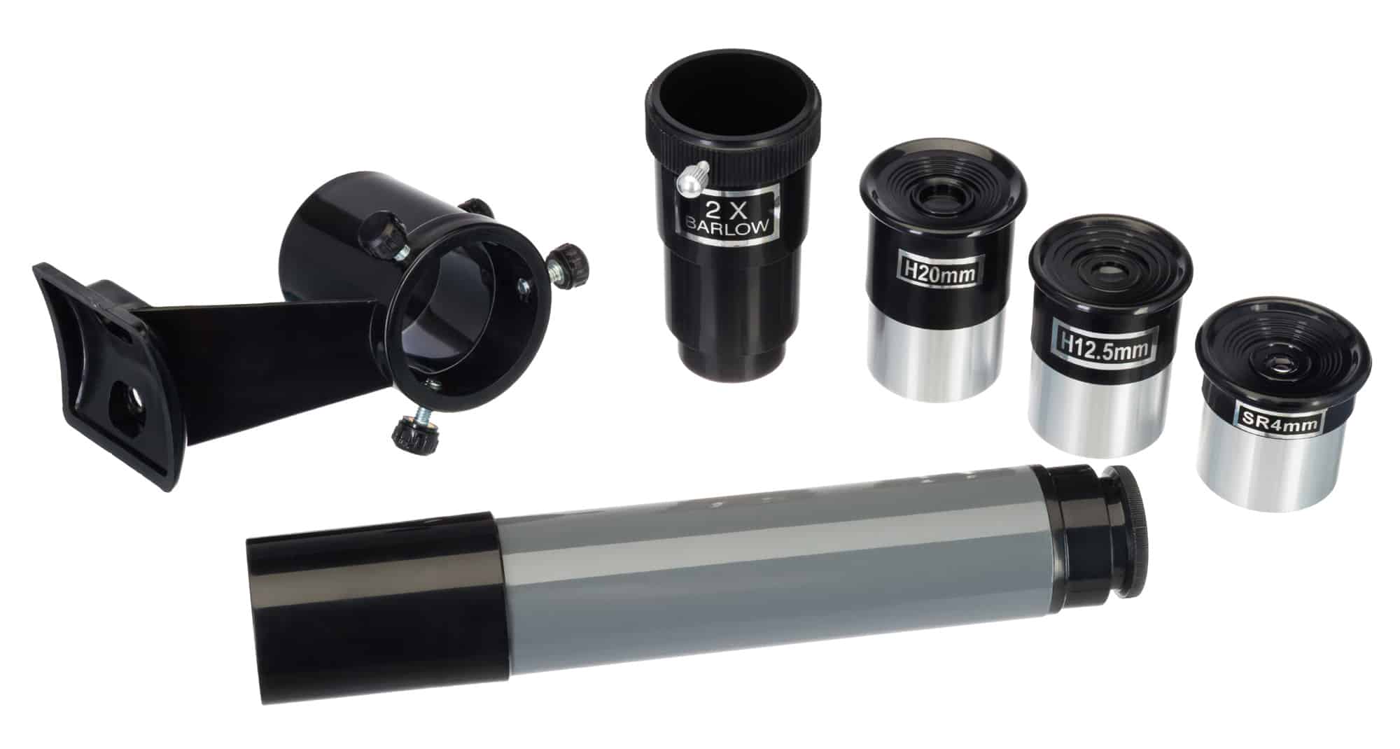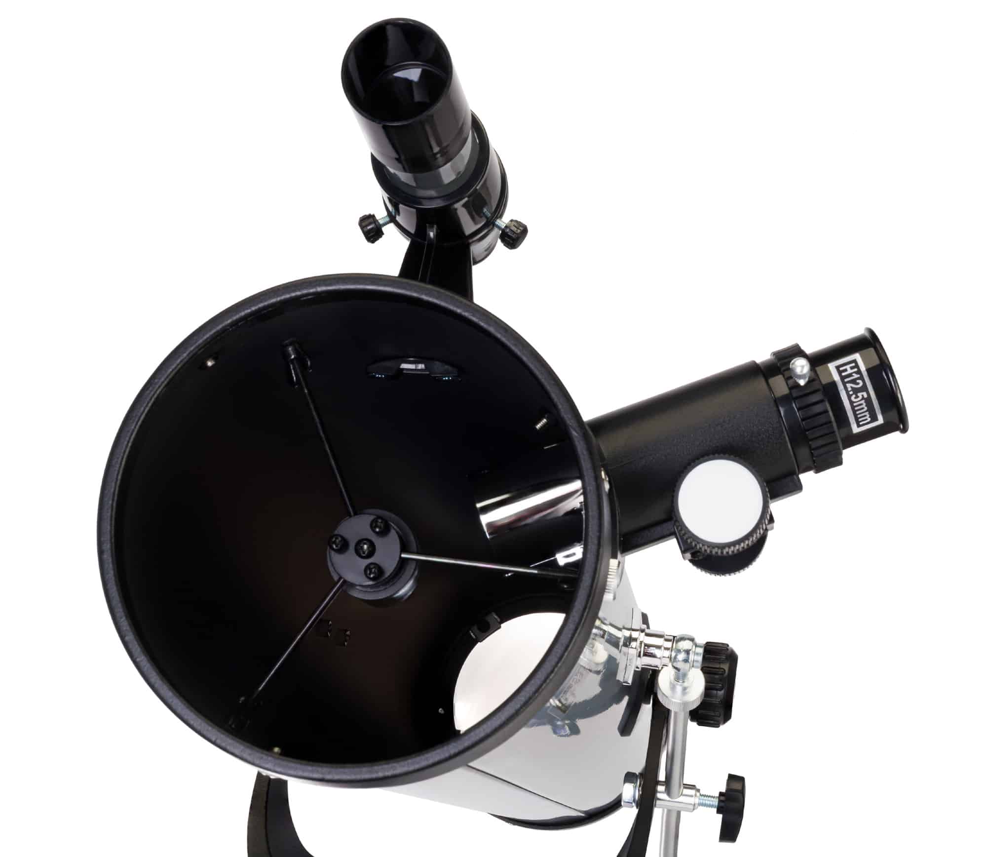 Gli elementi ottici del telescopio sono realizzati in vetro con trattamento antiriflesso. Lo specchio ha forma sferica e riproduce un’immagine di buona qualità e senza distorsioni fino al massimo ingrandimento utile. Per orientare il tubo ottico nella direzione degli oggetti si usa una montatura azimutale a forcella. Una vite micrometrica sull’asse verticale consente un orientamento più accurato.
