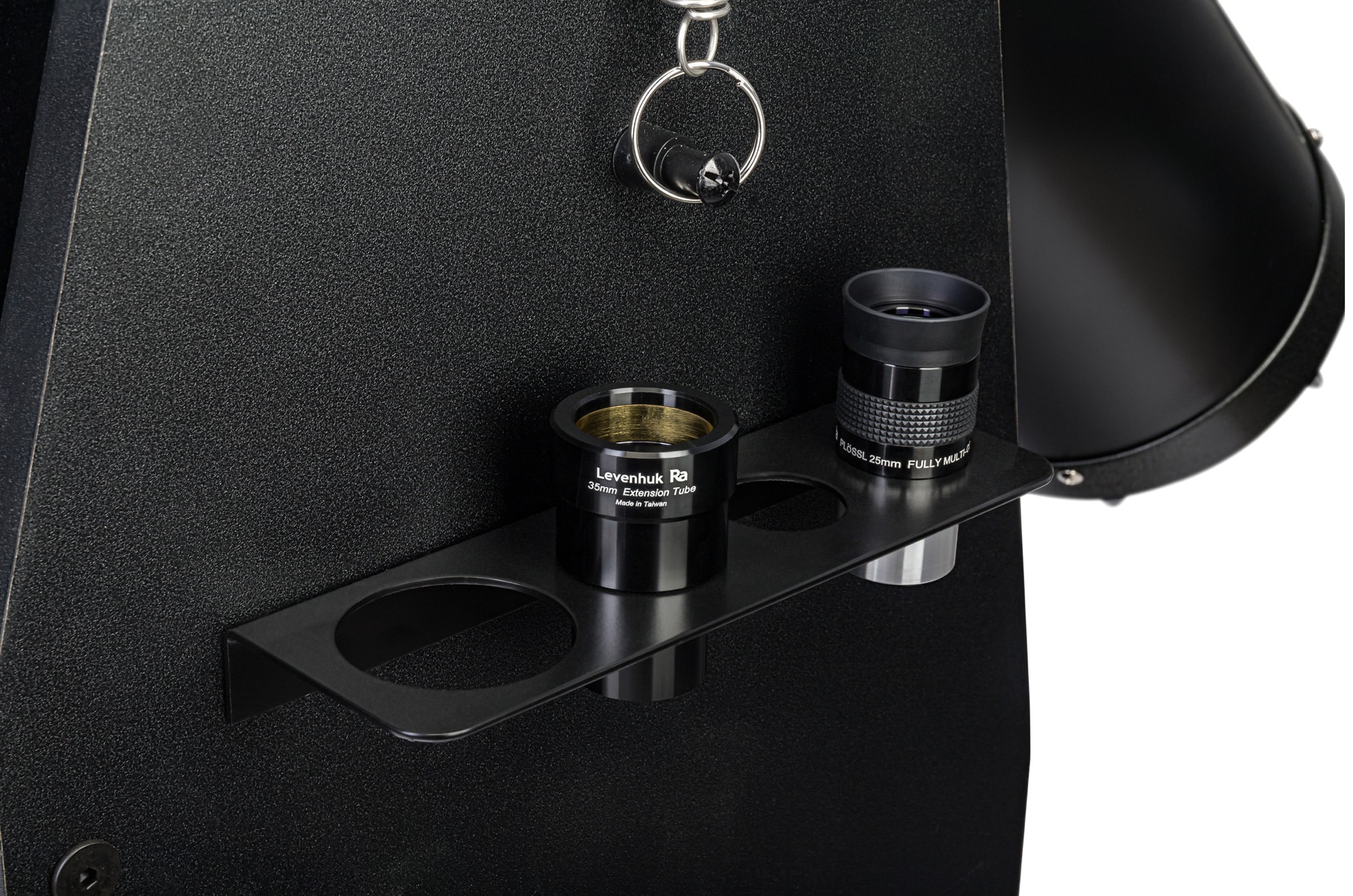 Il kit comprende due oculari simmetrici: 9 mm e 25 mm. Questi oculari offrono un’ottima visuale e consentono di iniziare immediatamente a esplorare il cielo stellato. La ricerca di oggetti astronomici è affidata a un cercatore ottico 6×30 mm.