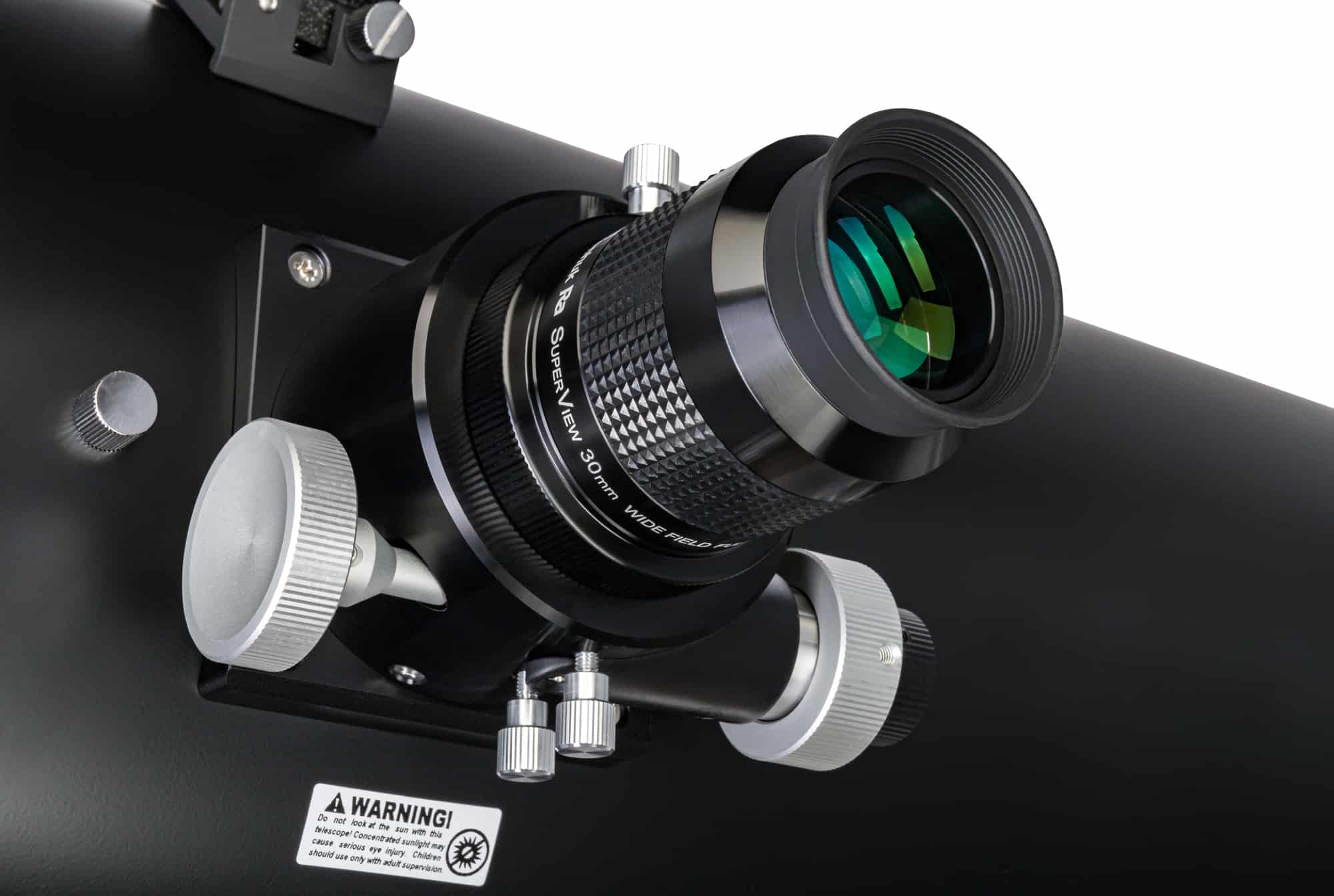 Il kit del telescopio comprende gli accessori base necessari per iniziare immediatamente le osservazioni. Gli oculari da 9 mm e 30 mm sono ideali per una prima introduzione allo spazio profondo. Il cercatore ottico da 8×50 mm serve a individuare gli oggetti celesti.