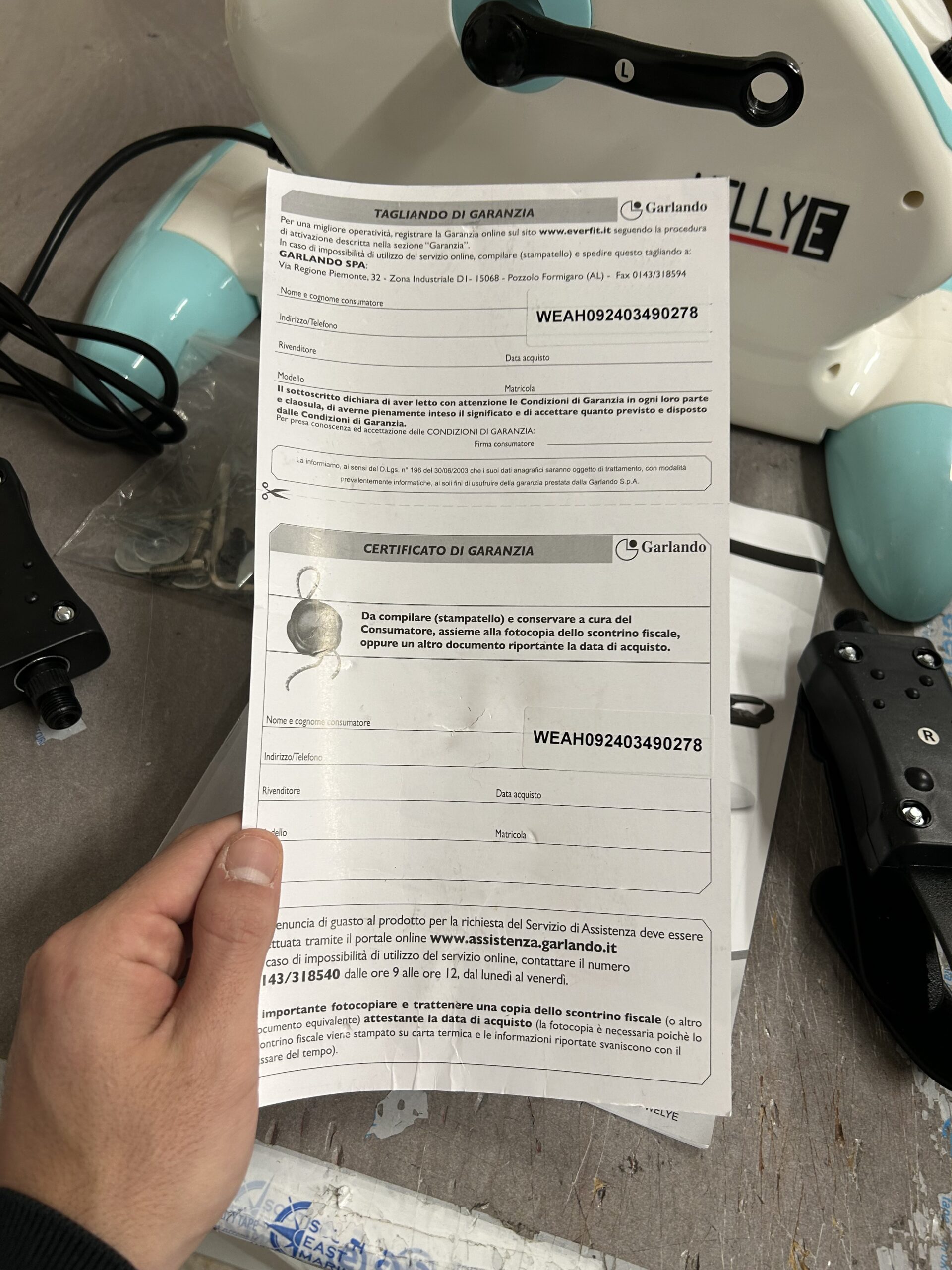 | Informazioni | conta-pedalate totali/tempo/calorie/scan/velocità. 5 programmi presettati |